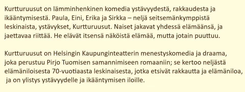 Kurtturuusu Helsingin kaupungin teatterissa 7.3.2026